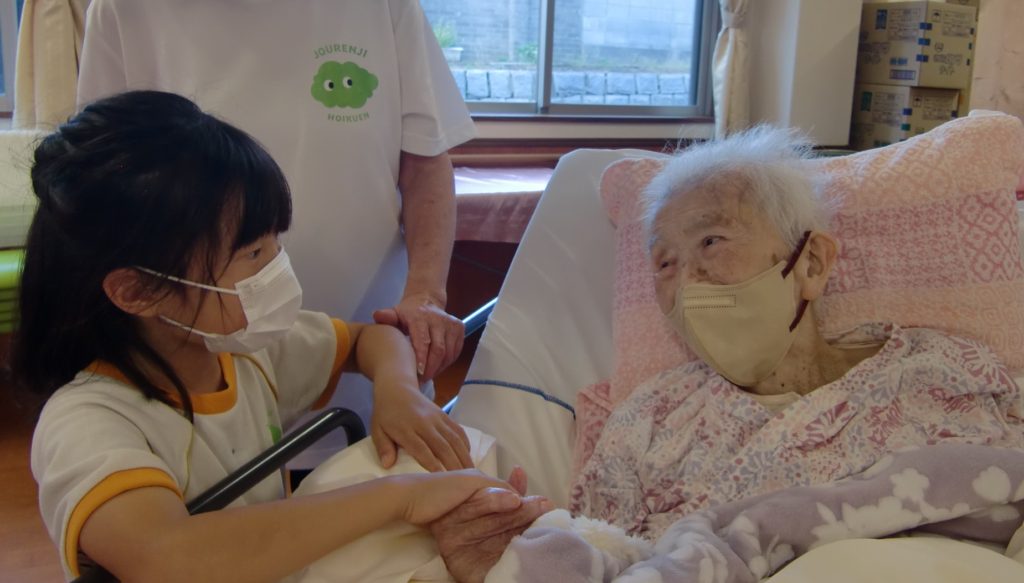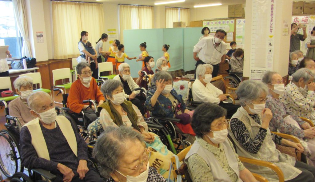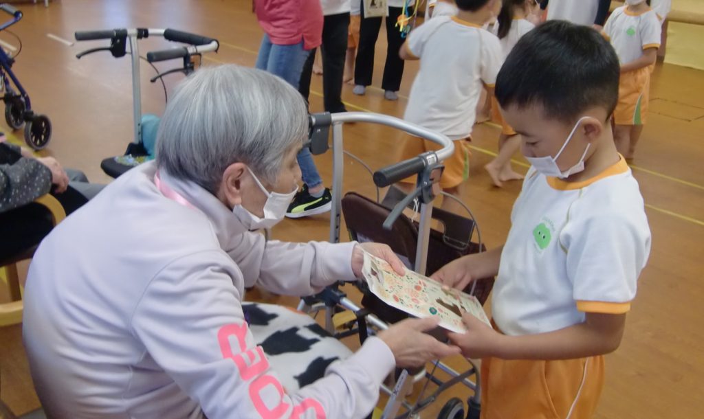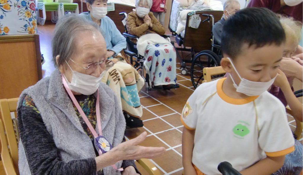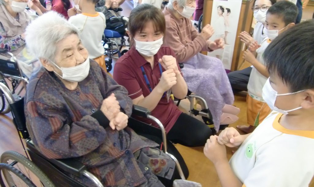 子供の若さ、パワーは励みになります。自ずと皆様、笑顔になっていました。手を触り、「しわがないね」のポロリ…。「私も昔は陸上の選手だった」など若かりし頃のエピソード多数(笑)