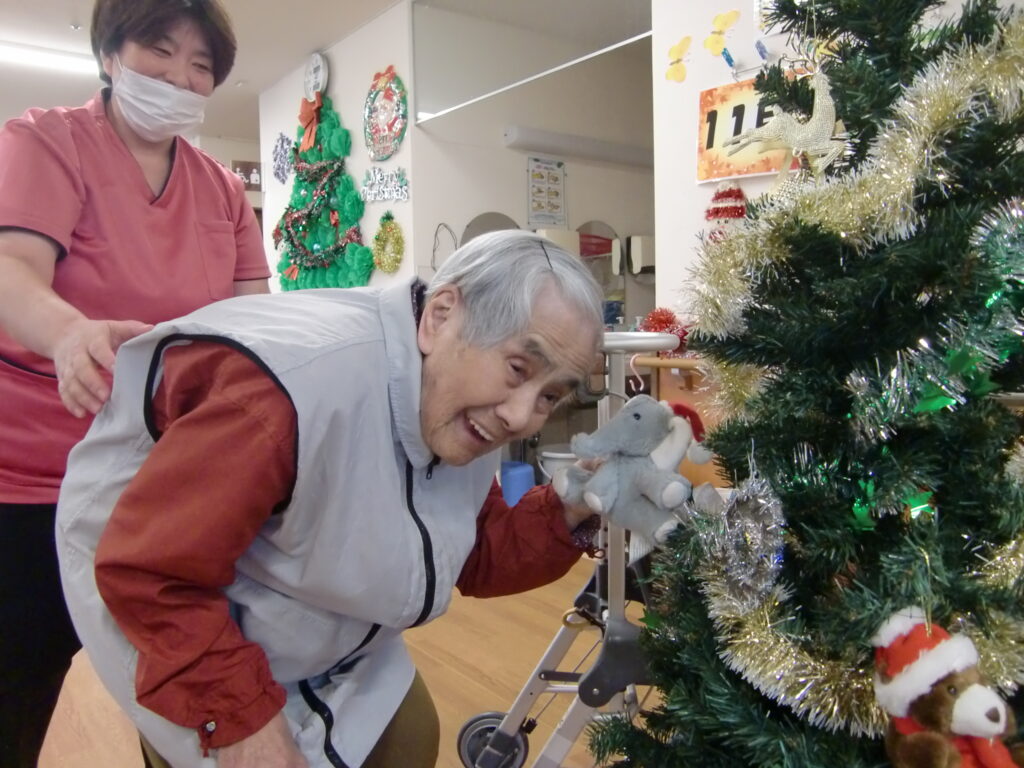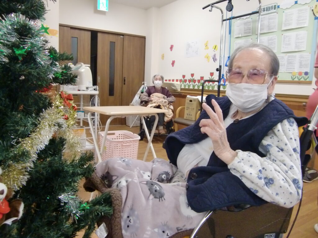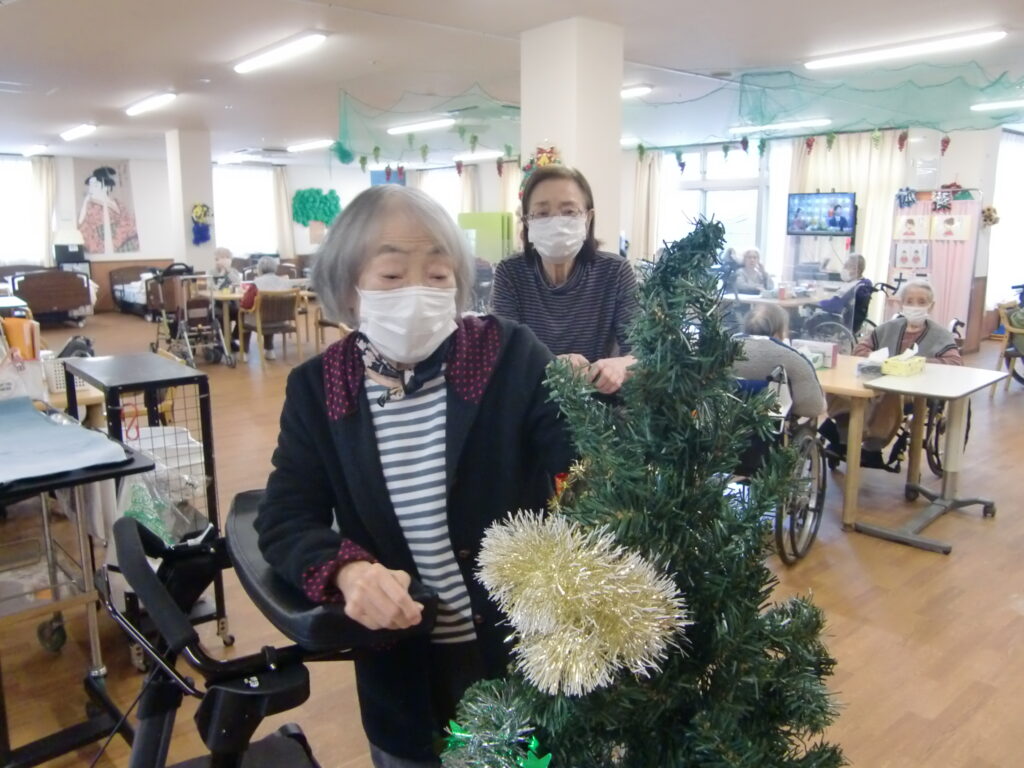 リハビリとしての目と手の巧みな動作。目が見えにくい…でも感覚で結べる。男性職員よりもセンスあり!