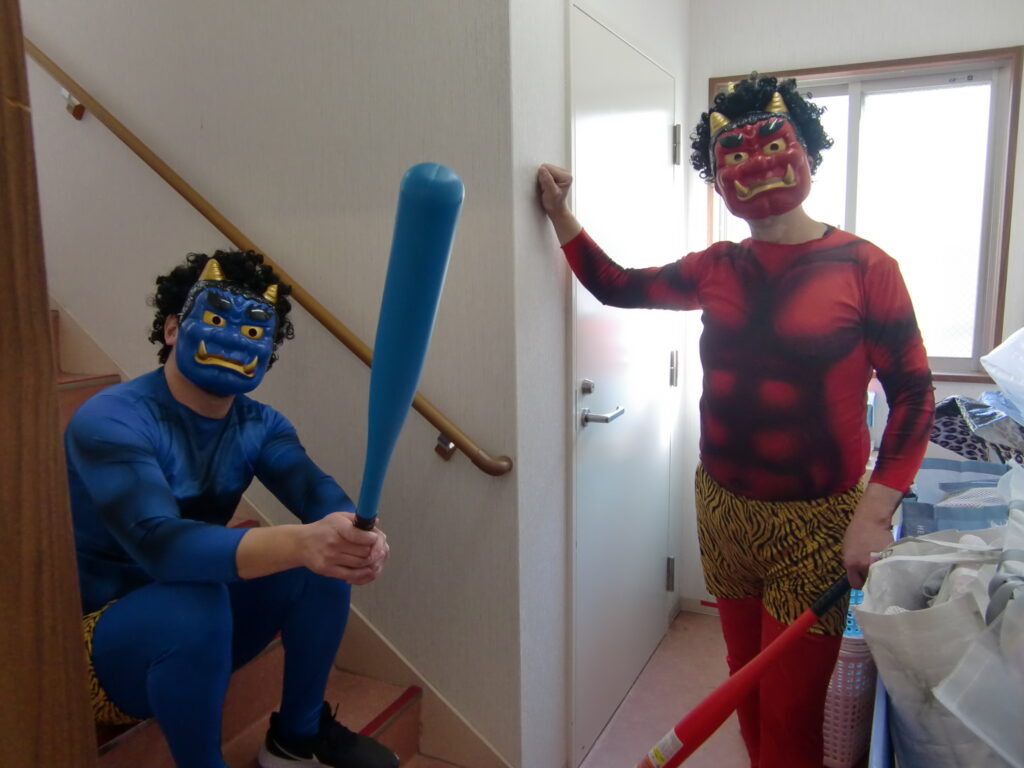 皆さん、笑顔の中、結構本気で投げていました(笑) 鬼は退散しました。