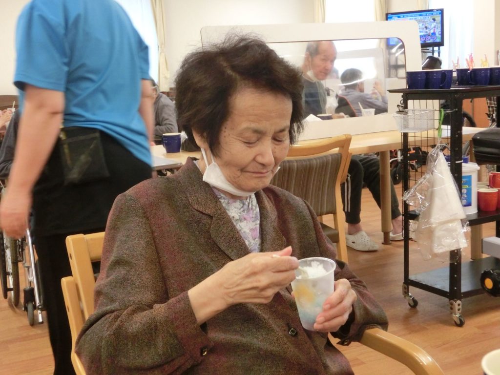 8月のおやつレクで「かき氷」を食べました!