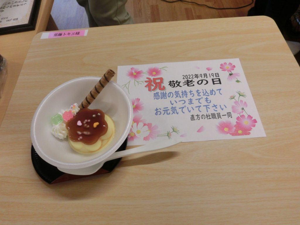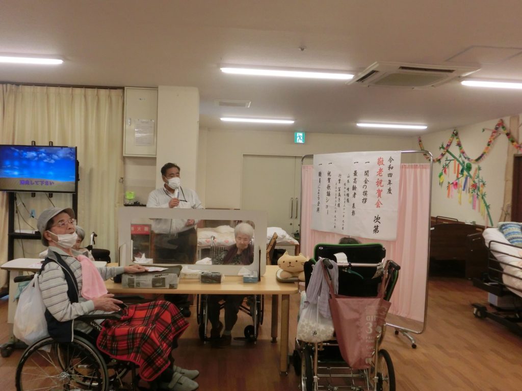 入居者の皆様を敬う為、職員で「敬老祝賀会」を催しました(^○^)