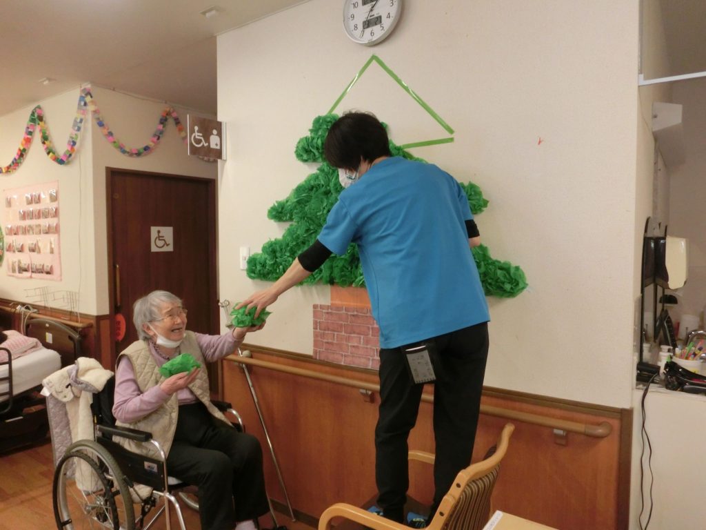 もうすぐ「クリスマス」ですね(^○^) 今日は、クリスマスツリーを皆様にお手伝いいただき 作成しましたヽ(^o^)丿 なかなか可愛い仕上がりです(自画自賛) これで「サンタクロース」も来てくれますね(*‘∀‘)