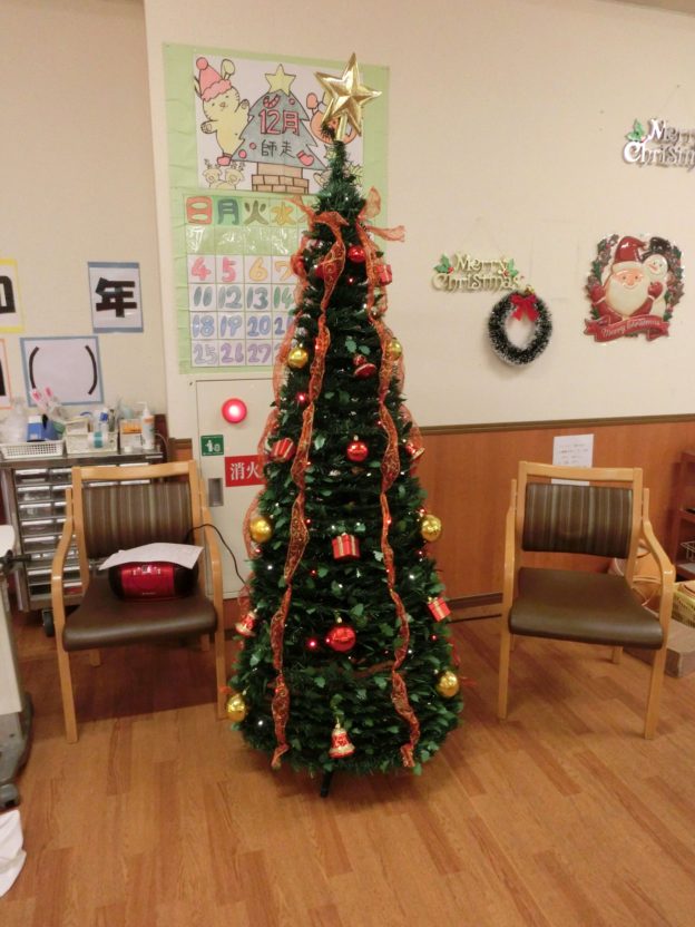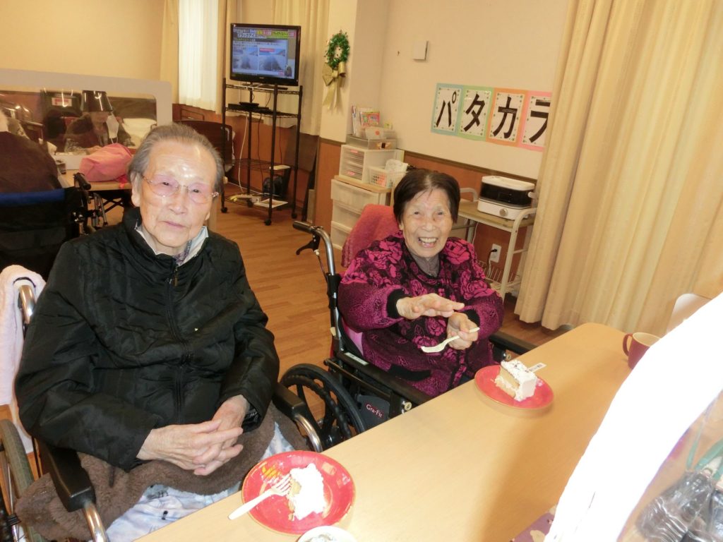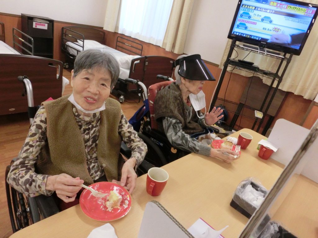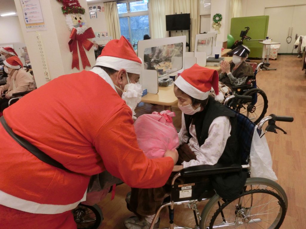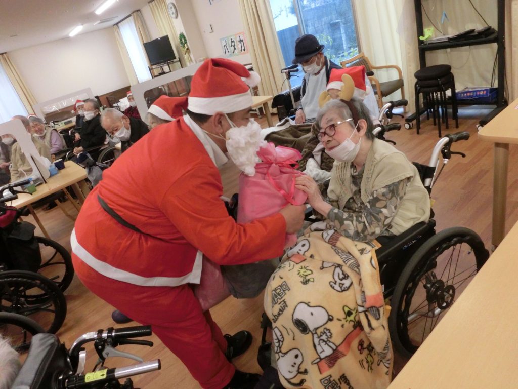 「クリスマス会」開催(‘◇’)ゞ 本日、クリスマス会をしましたヽ(^o^)丿 「はじめの挨拶」です! 「職員の寸劇」はたして… 「受け」は、良いようです! クライマックス!! 迫真の演技で、盛り上がりは「最高潮!」 「記念撮影」の様子 喜んでもらえて良かった(^o^) 「太り過ぎのサンタクロース」が登場しました! 皆さんに「ひざ掛け」のプレゼントヽ(^o^)丿 寒い冬を乗り越えましょう! 最後は「クリスマスケーキ」を美味しくいただきました(‘◇’)ゞ 最高の笑顔に癒されますヽ(^o^)丿