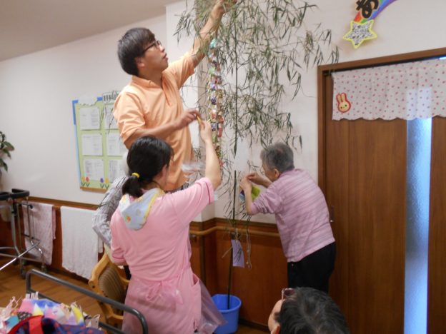 直方の杜1階にありますデイケア(通所リハビリテーション)では、七夕の短冊飾りを行いました