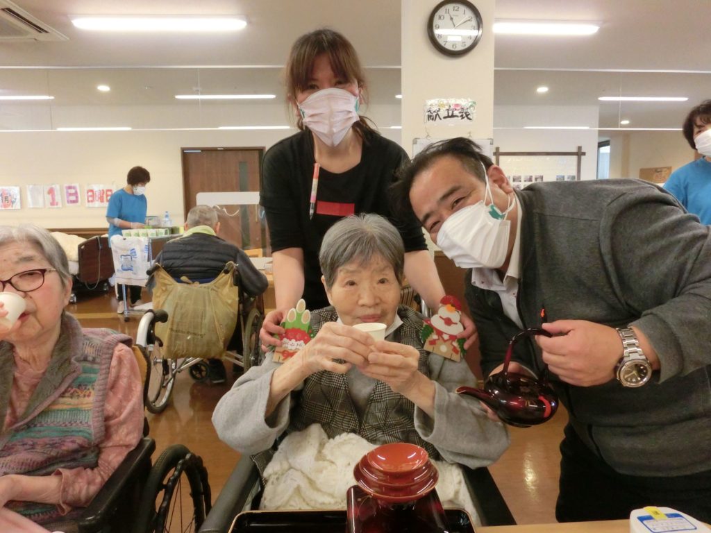 「お屠蘇」はお酒ではなく、ノンアルの「甘酒」を飲んでいただきました(・o・)